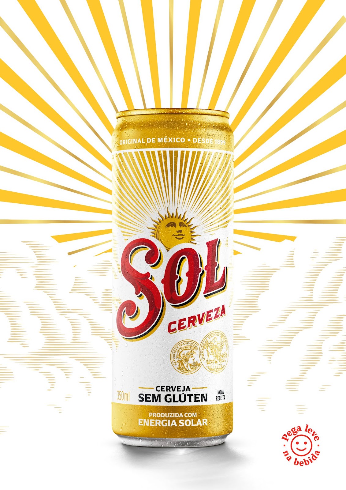 A mudança acompanha o bom desempenho da marca no país, que já havia lançado em 2024 a Sol 0,0 — versão sem álcool, também sem glúten, com vitaminas B6, B9 e D2 e apenas 51 calorias.