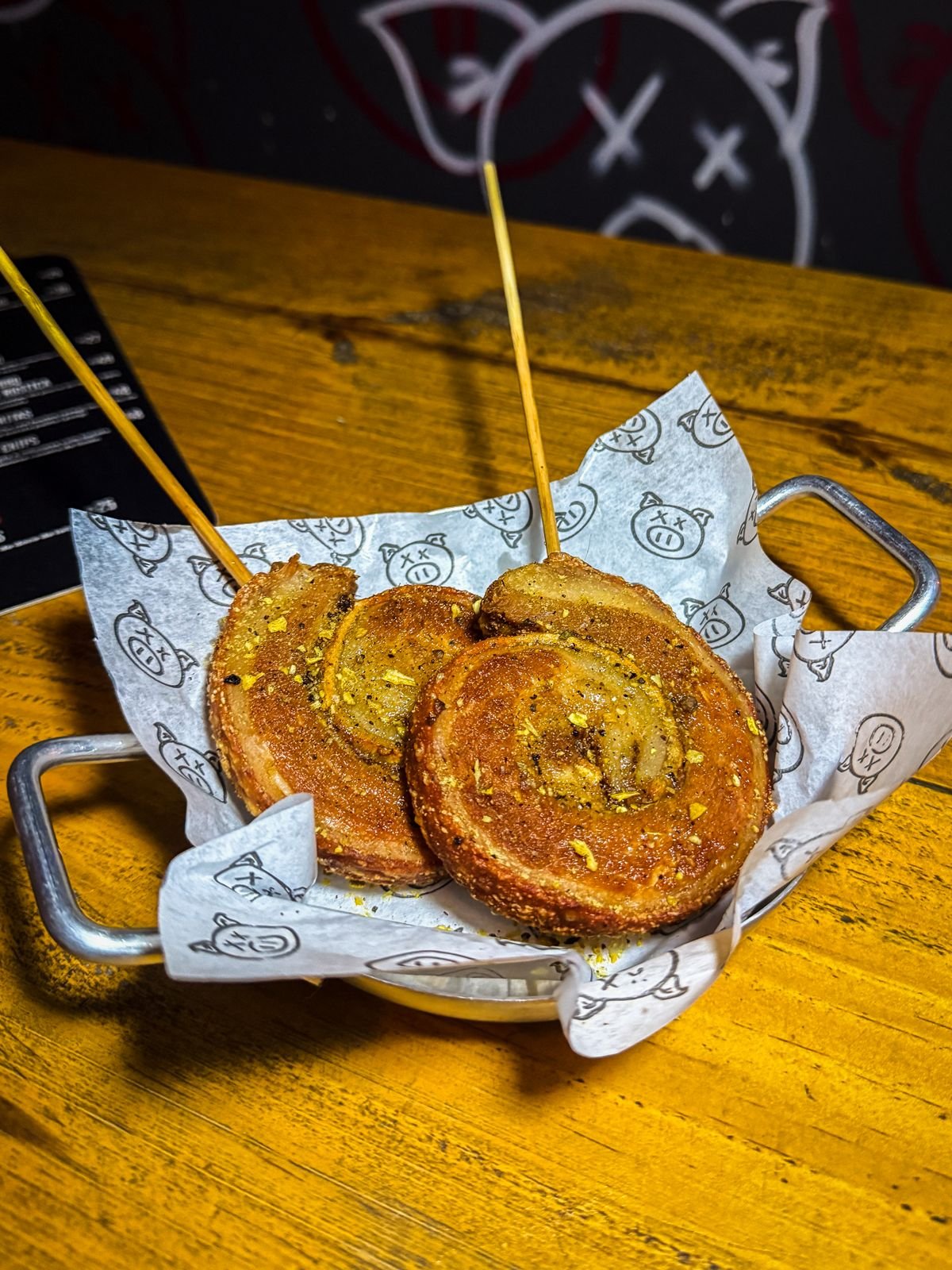 Pirulito de torresmo de rolo com lemon pepper – R$ 30